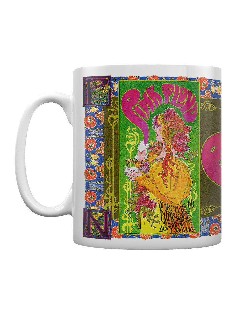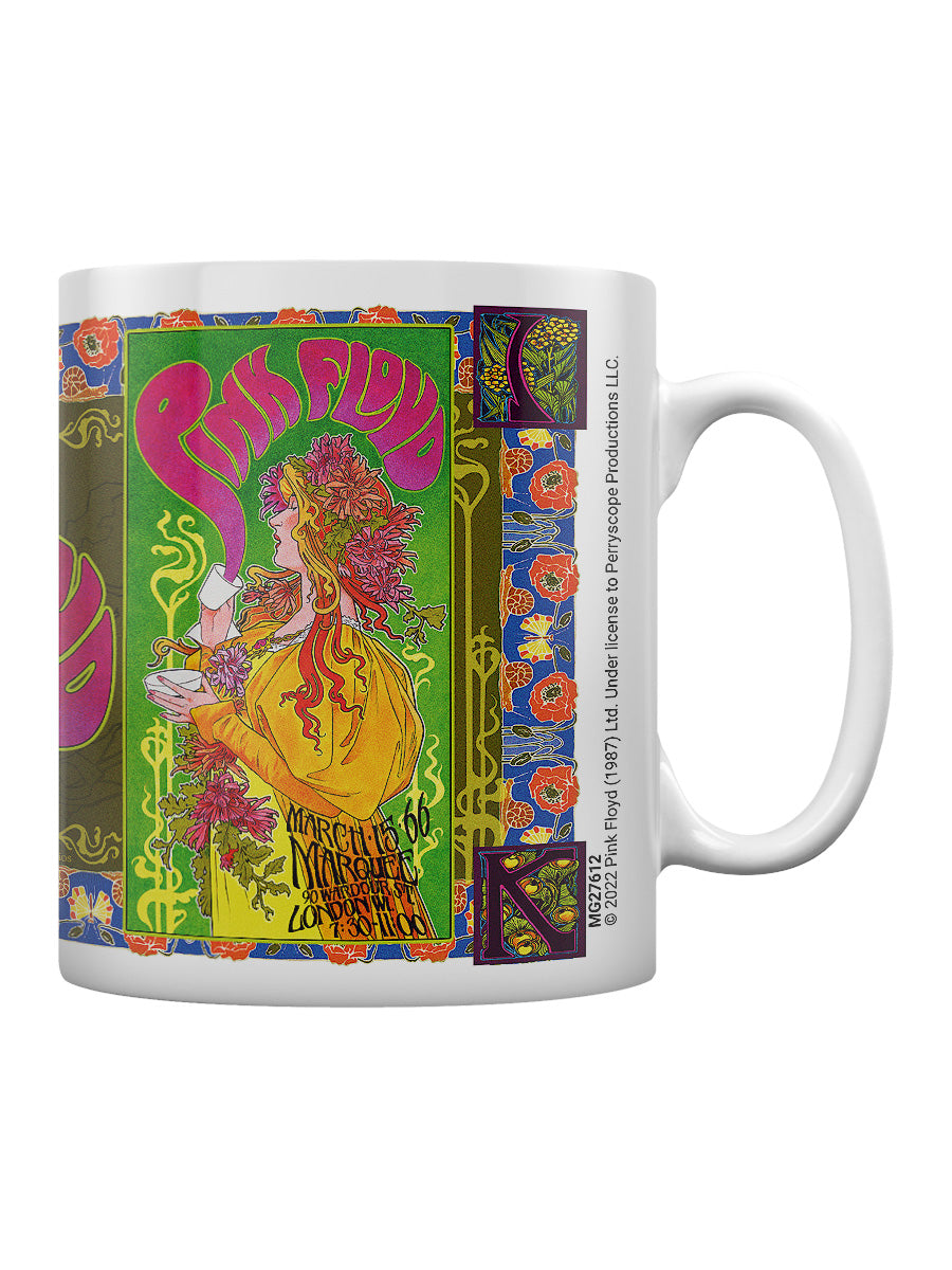 Join Pink Floyd at the Marquee in London on the 15th March 1966 for one of their earliest live performances. This mug combines both retro and psychedelic imagery and colour to create an epic masterpiece. The perfect addition for any fans of the iconic rock band.