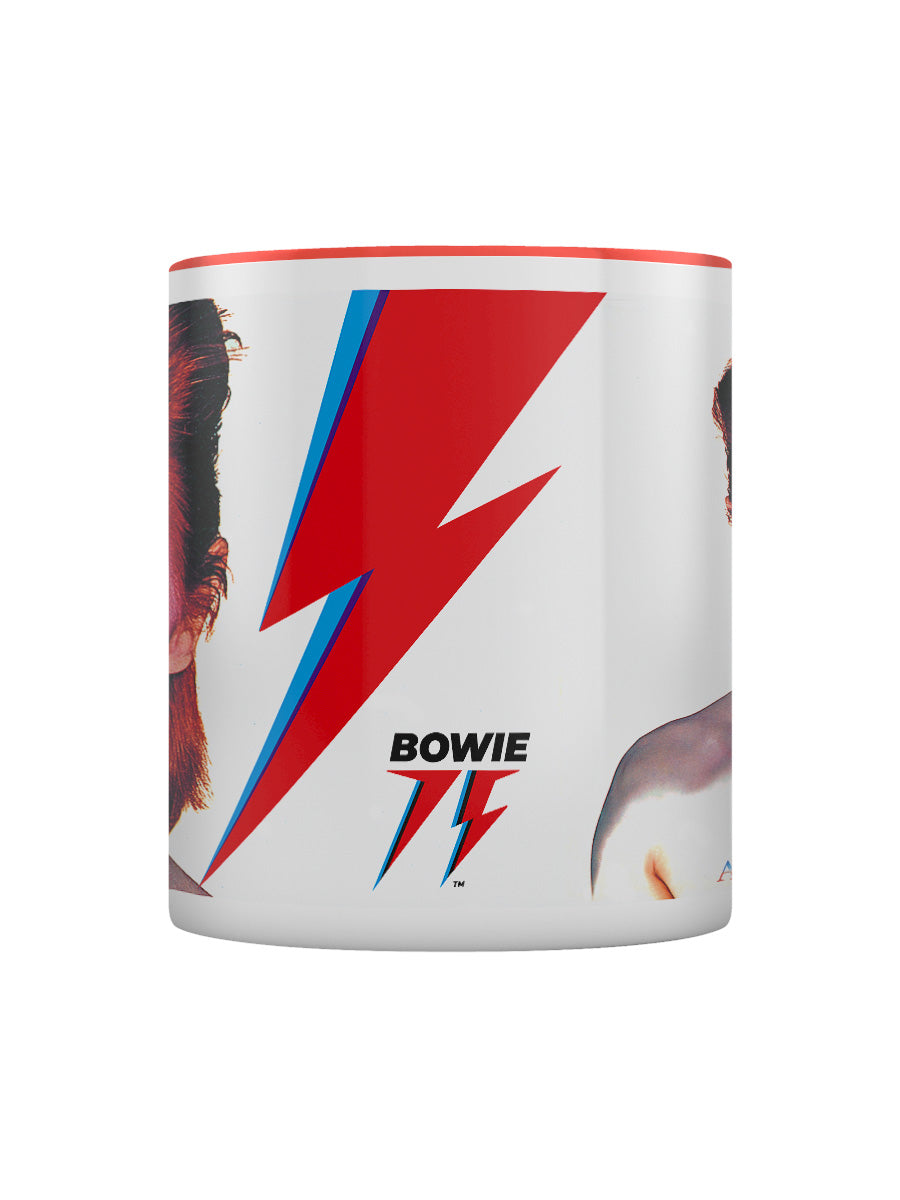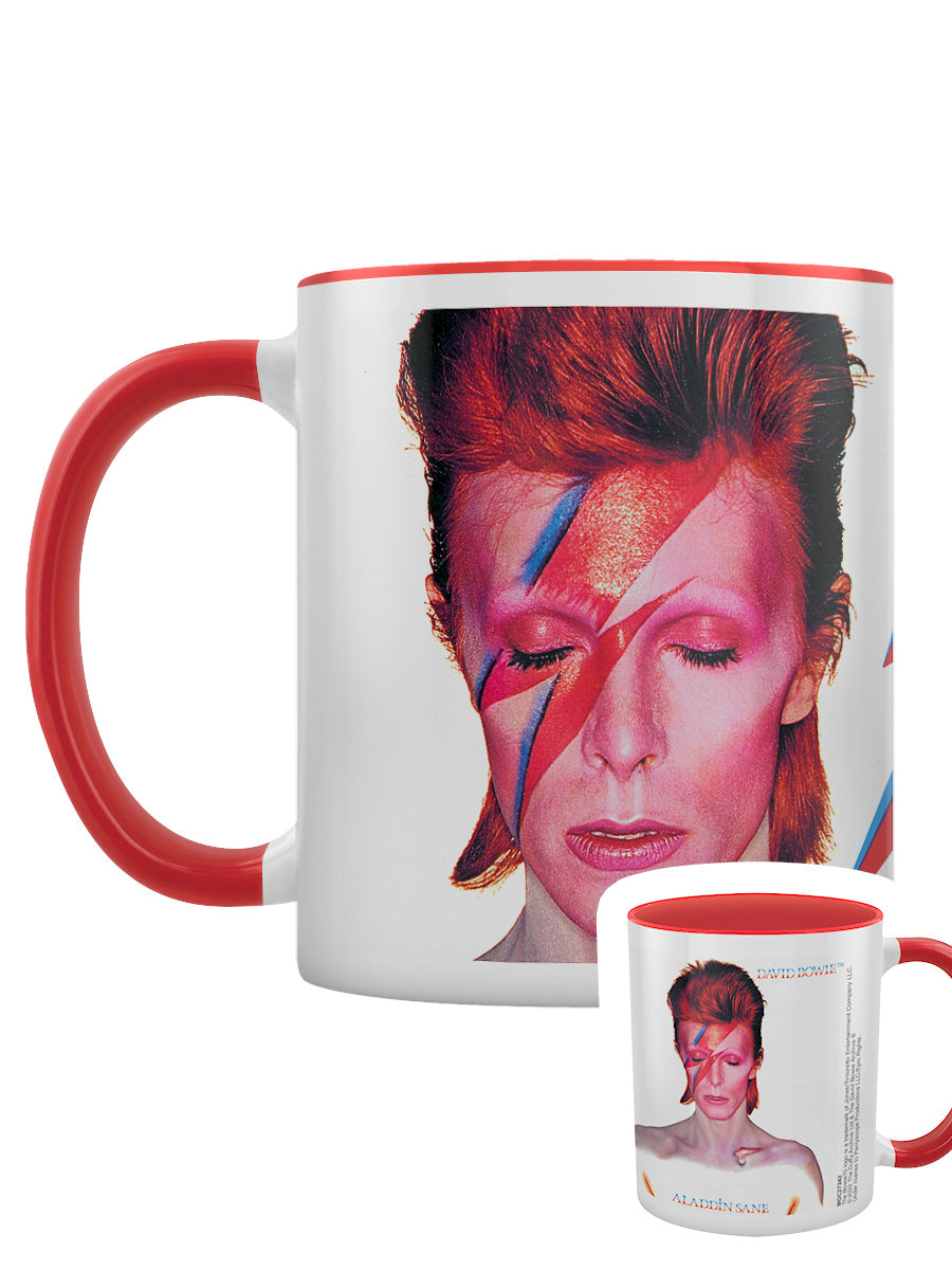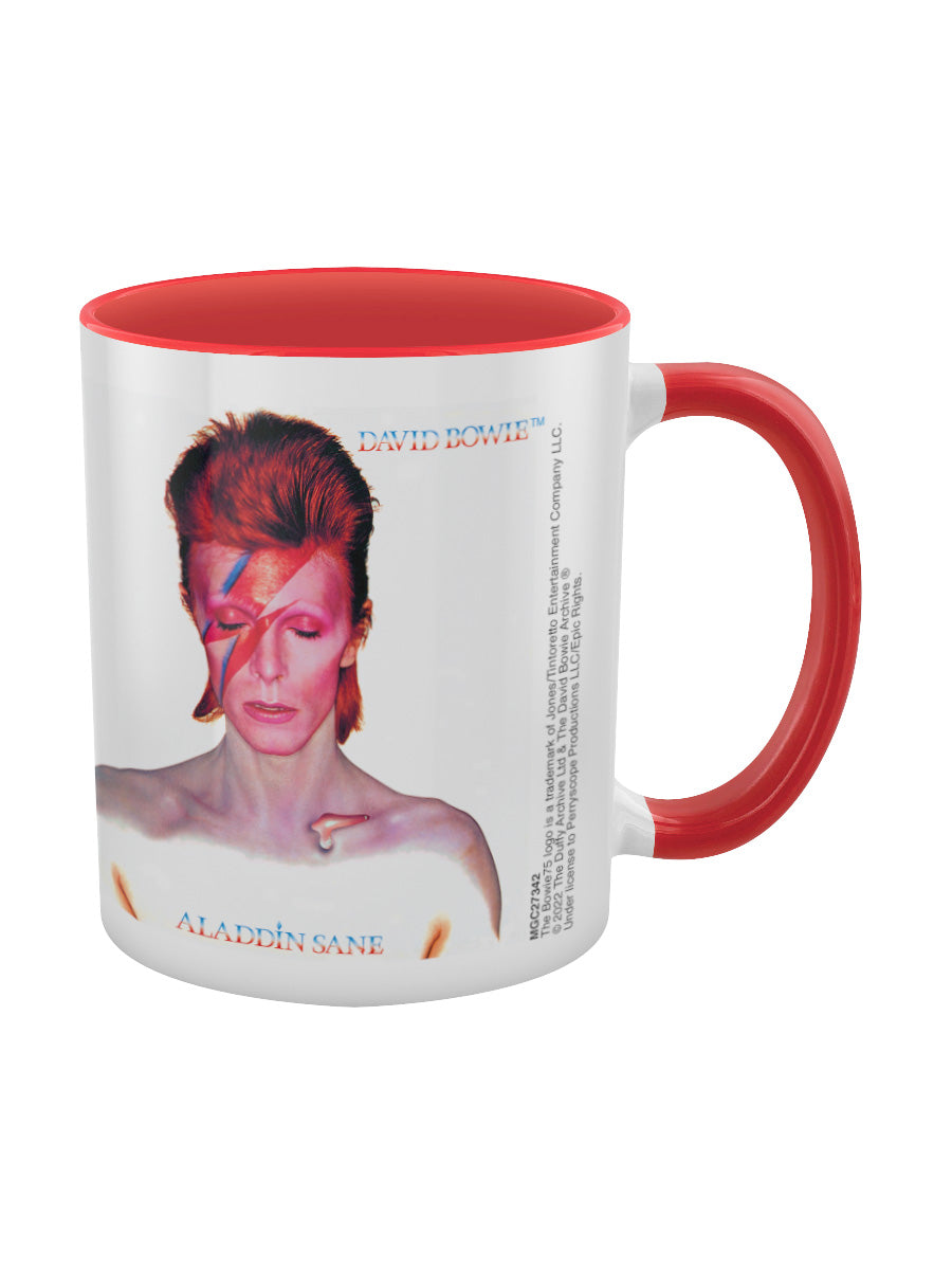 Show your appreciation for David Bowie and his sixth studio album Aladdin Sane. This mug features the very bold album cover artwork which shows the main man himself with a zigzag painted down his entire face. This was Bowie's idea to create a new persona as Aladdin Sane.