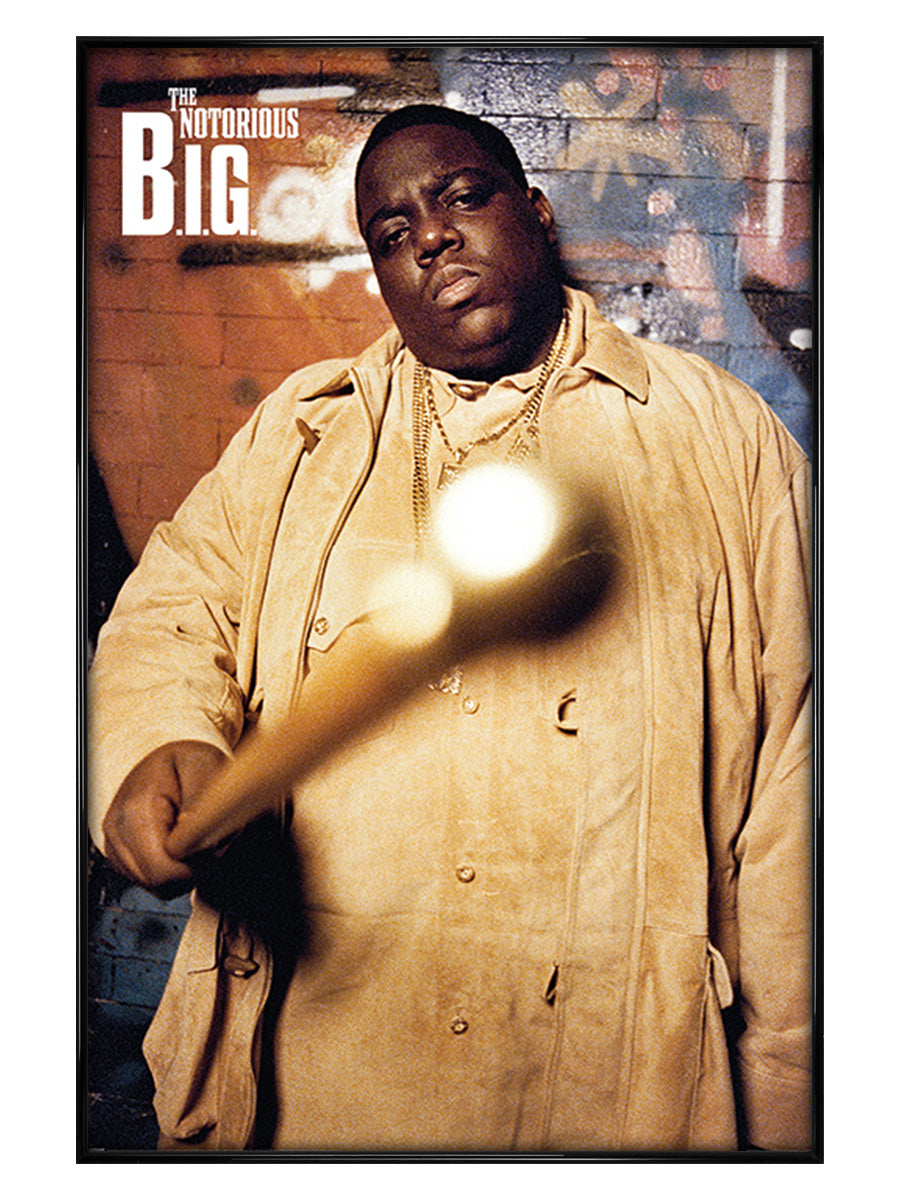 The king of rap and the personality to match. Biggie became known for his laid back approach and semi-autobiographical lyrics, often detailing hardships alongside successes.Remember the extraordinary life of the Big Poppa rapper with this epic poster of the Notorious BIG and his iconic cane.