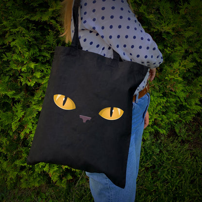 Look out for those beady eyes watching you in the dead of night, with this curious kitten tote bag. Like sap dripping out of a tree these amber eyes are able to see more than any one else in the pitch black. With a teeny pink nose, this simple design is great for any cat lovers shopping trip.