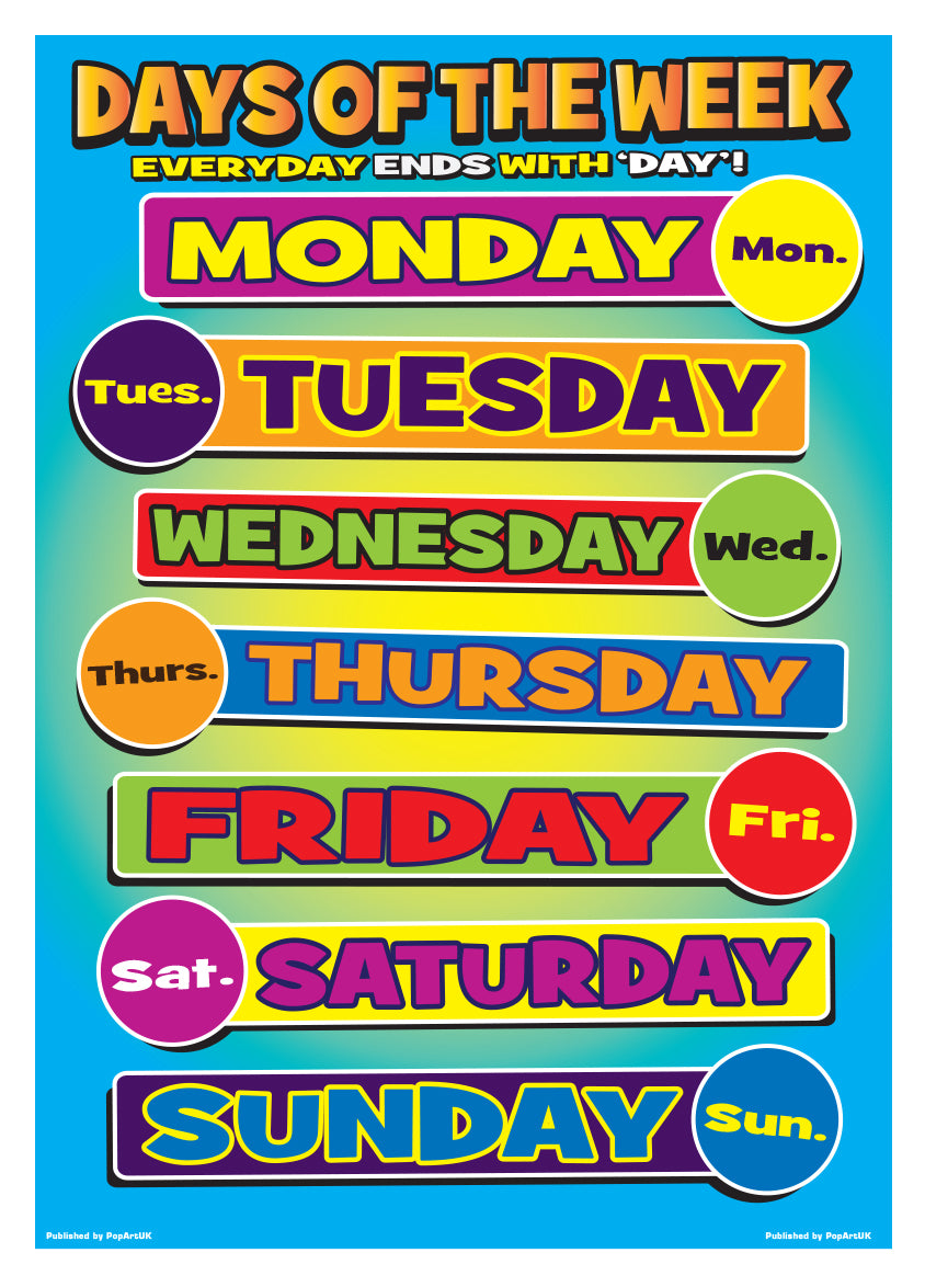 Days Of Week Seven Days of Learning Mini Poster 32cm x 44cm (13" x 17")