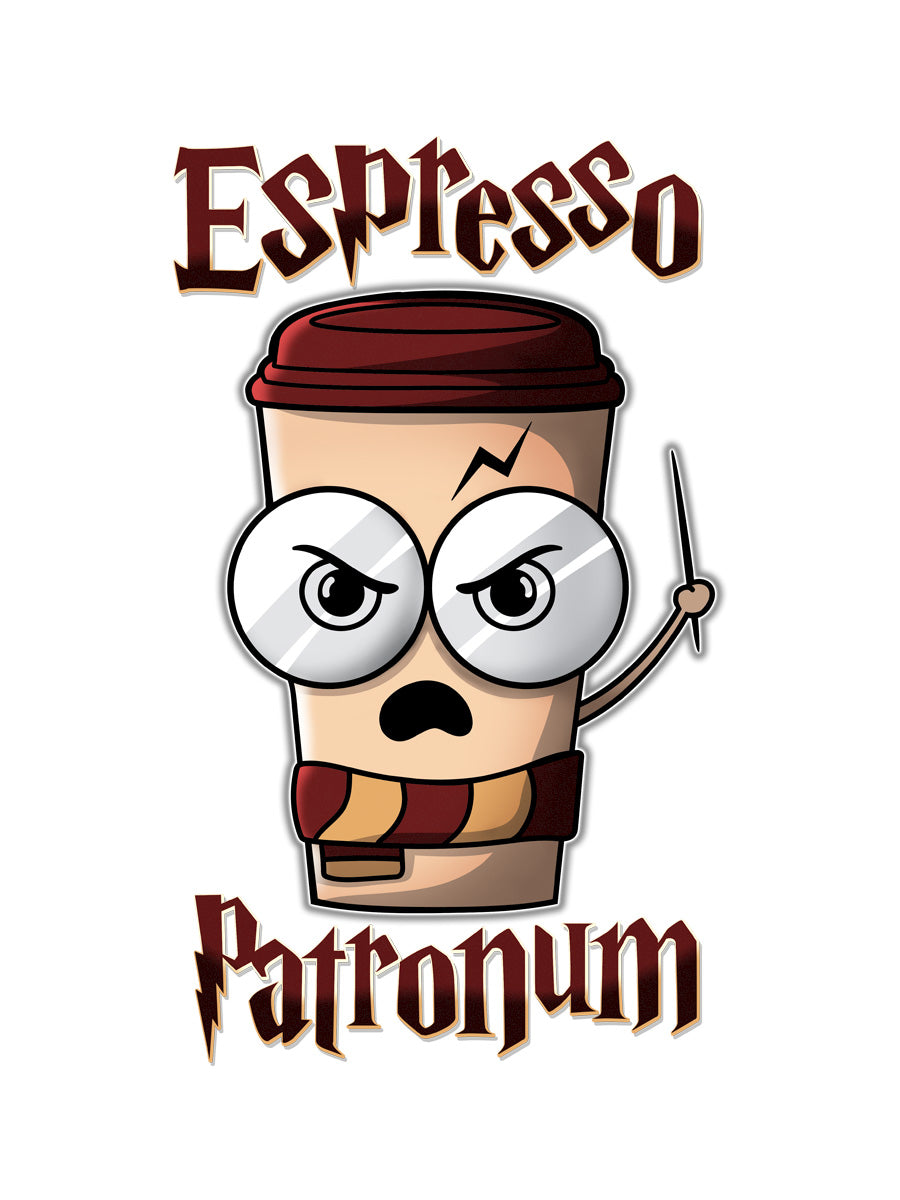 The most powerful defense charm ever known, you're sure to get served first in the coffee shop with this spell! Without our daily caffeine intake, it's no surprise the old Patronus charm has been cast every so often. This angry cup of Joe definitely needs to chill his beans before he gets killed, or worse expelled! Make sure everyone knows you're not to be approached before this mug is well and truly empty!