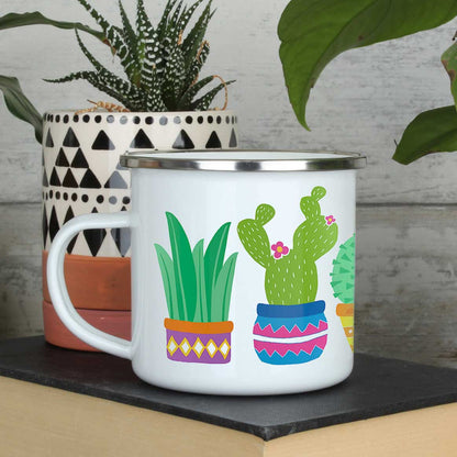 Cac-Tea Hedgehog Cacti Enamel Mug 11cm x 7.5cm (4" x 3")