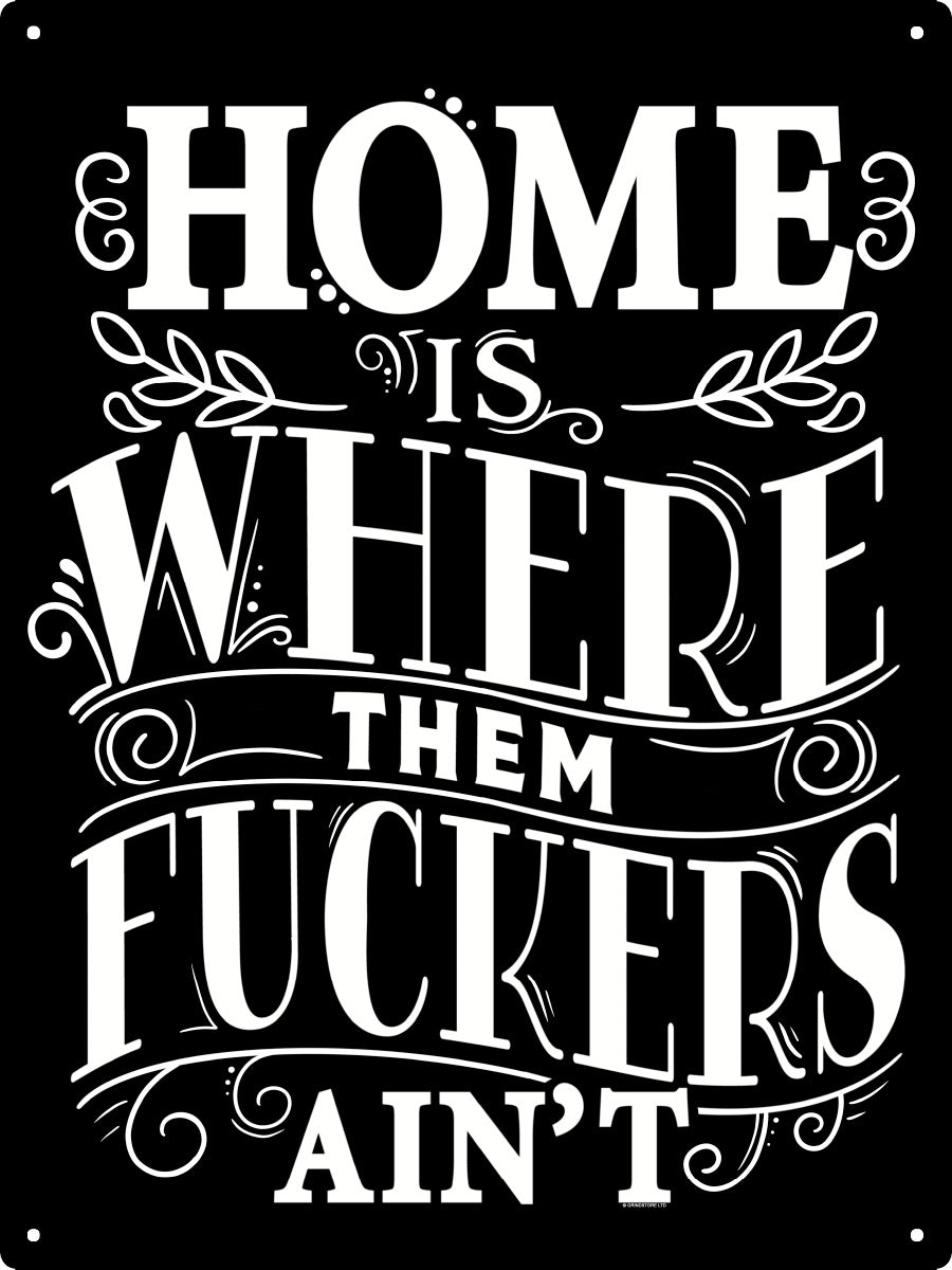 Home Is Where Them F*ckers Ain't Dark Humour Tin Sign 30.5cm x 40.7cm (12" x 16")