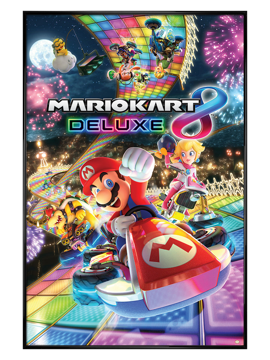 Accelerate your way into the world of Nintendo Switch with Mario and friends in the 2017 Mario Kart Deluxe 8. With the revamped battle modes including the Renegade Roundup, the much loved racing game boasts many exciting features you're bound to love. This psychedelic poster sees the main man leading the race through an intergalactic disco, showing that the team are bringing it back big!