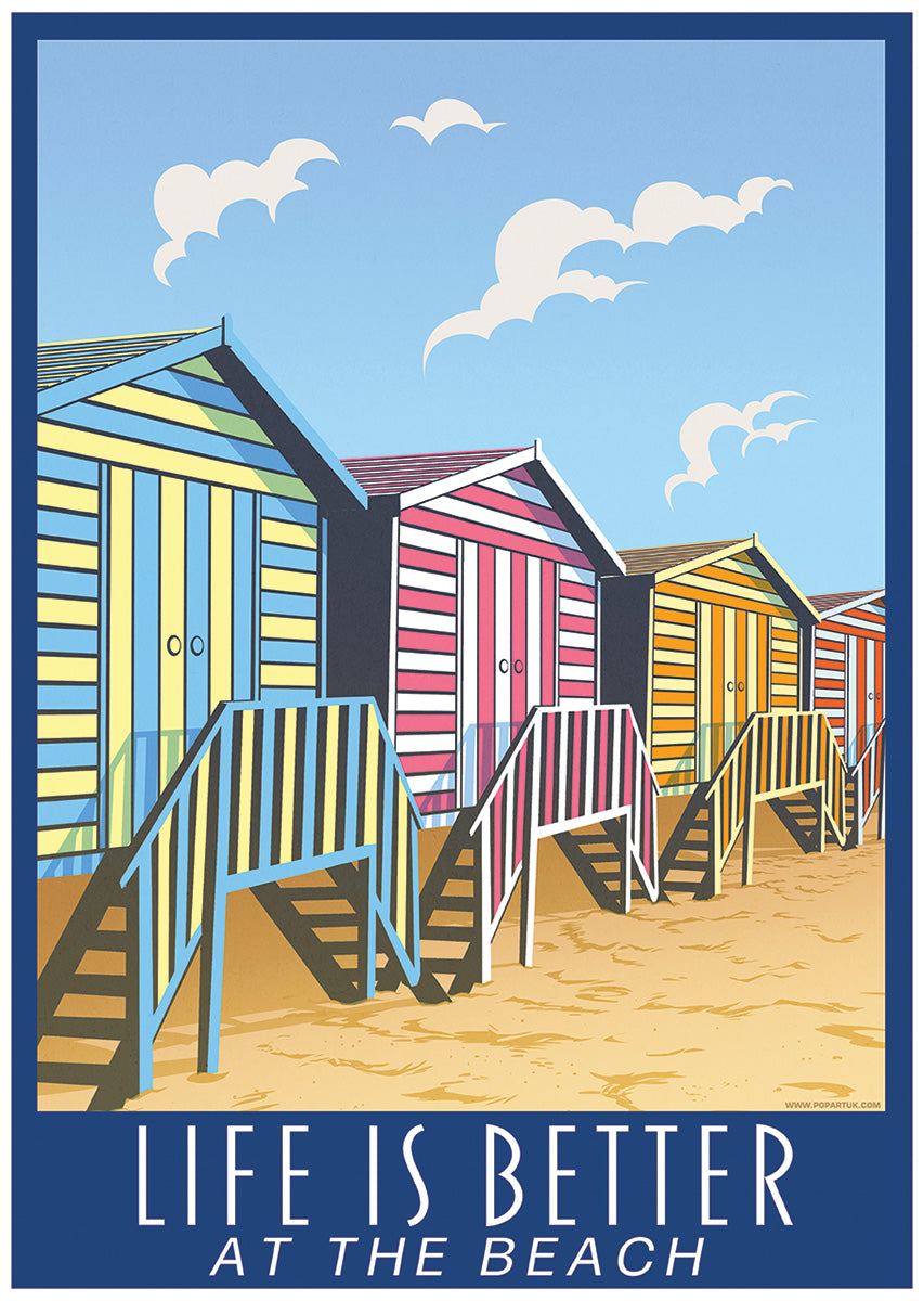 Life Is Better At The Beach Beach Huts Mini Poster 32cm x 44cm (13" x 17")