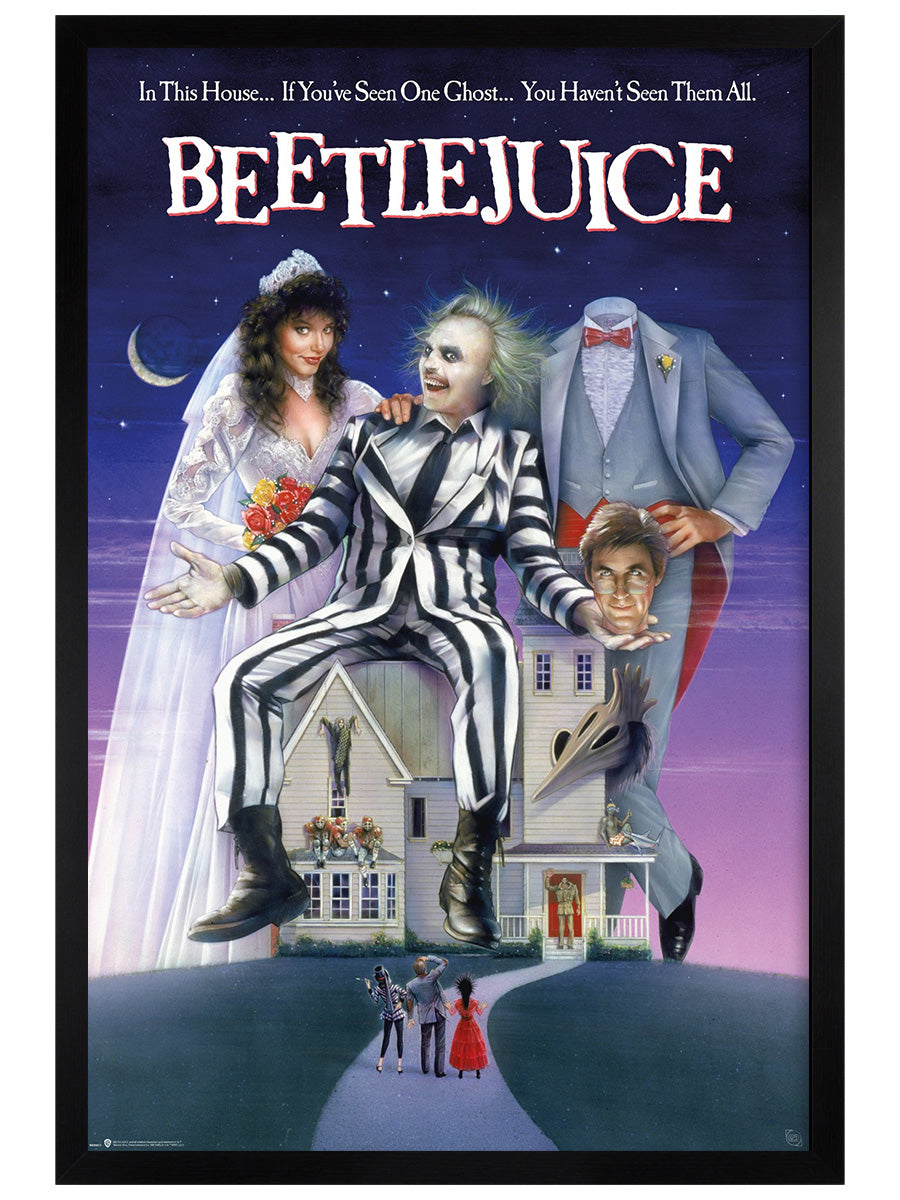 Get in the mood for some spooky encounters as you hang this classic movie poster in your home. Never say his name 3 times though, because who knows what kind of trouble he can conjure up. Beetlejuice is a devious poltergeist with a habit for mischief! This iconic poster is the ideal way to decorate your home and the perfect excuse to show off your love for the 1988 Tim Burton classic starring Michael Keaton and Alec Baldwin.