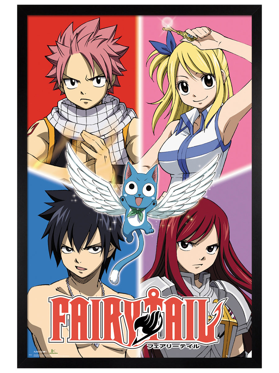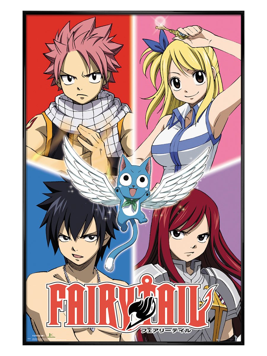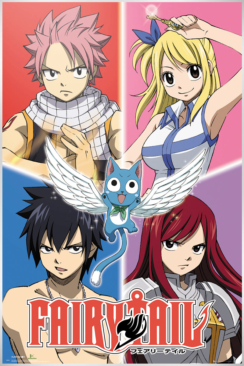 Featuring as the star on this poster the blue Exceed Happy, spreads his small but magical wings. Joined by his friends Natsu Dragneel, Lucy Heartfilia, Gray Fullbuster and Erza Scarlet, he is ready to offer his knowledge and special powers to help them. Join the team to complete their mission to defeat the dark wizard Zeref and maybe you too have the skills of a true wizard!