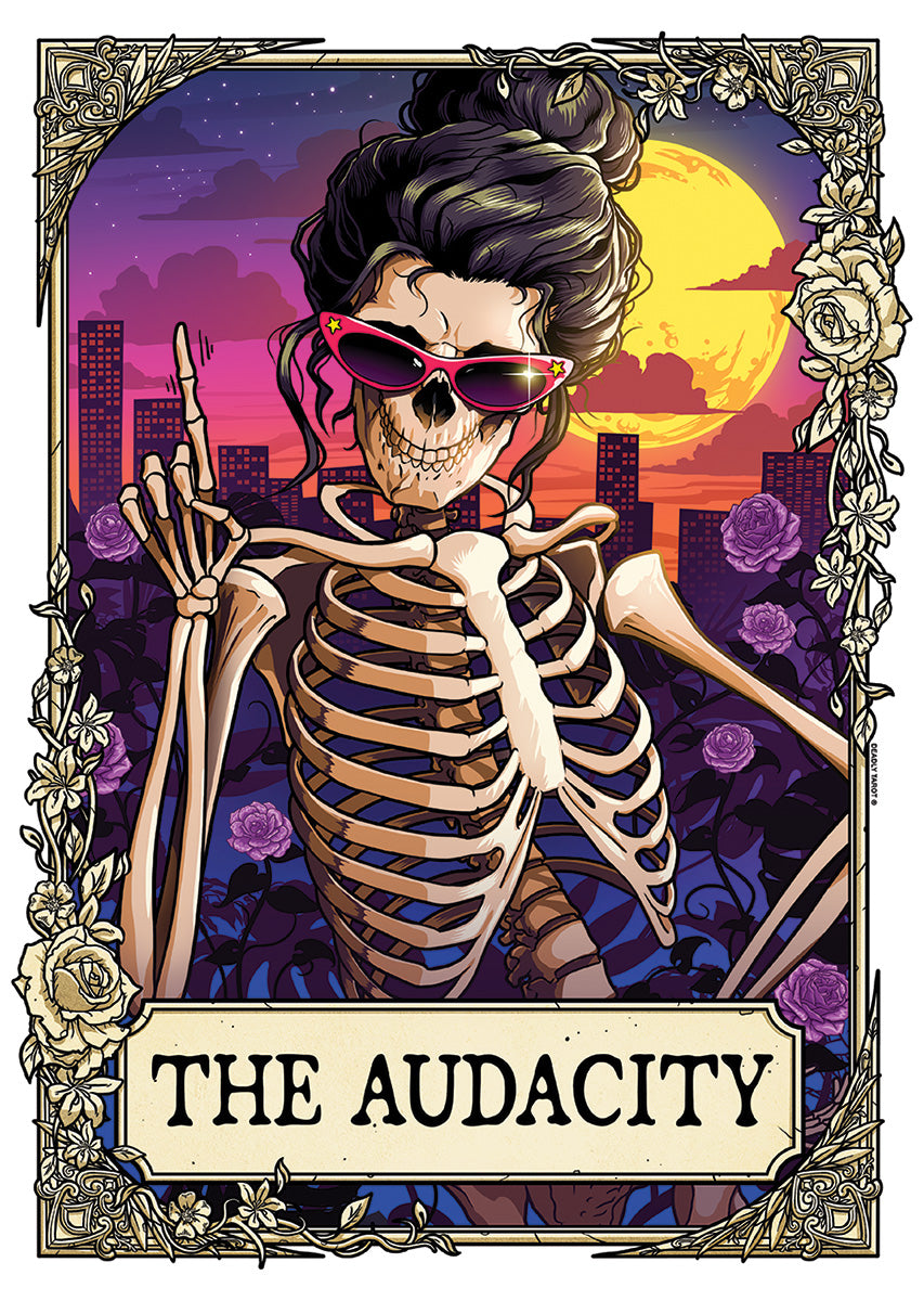 Get your room looking special and spooky with this excellent colourful take on tarot's. The Audacity from Deadly Tarot has our skeletal pal here telling us to get audacious! Go on then...you first! Official licensed merch.