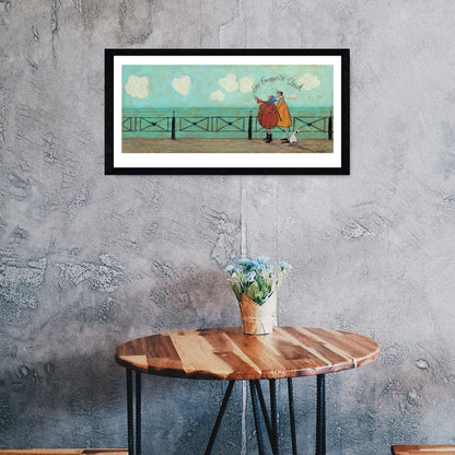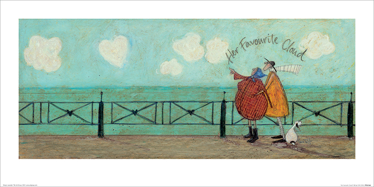 In the shape of a love heart, Violet Mustard points out her favourite cloud in this stunning print from acclaimed artist; Sam Toft. Standing by her husband Mr Mustard's side, Violet points towards the sky as the cloud formulations present a stunning display of love. If you enjoy nothing more than looking to the heavens in search of amazing shapes and love to daydream as you look into the blue sky, then this is the perfect piece of art to hang lovingly in your home.