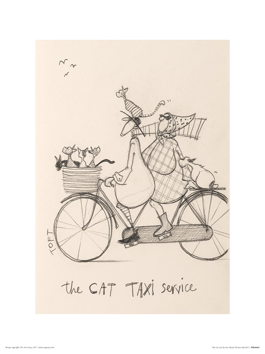 The Cat Taxi Service Sketch Sam Toft Mini Print 30cm x 40cm (12" x 16")