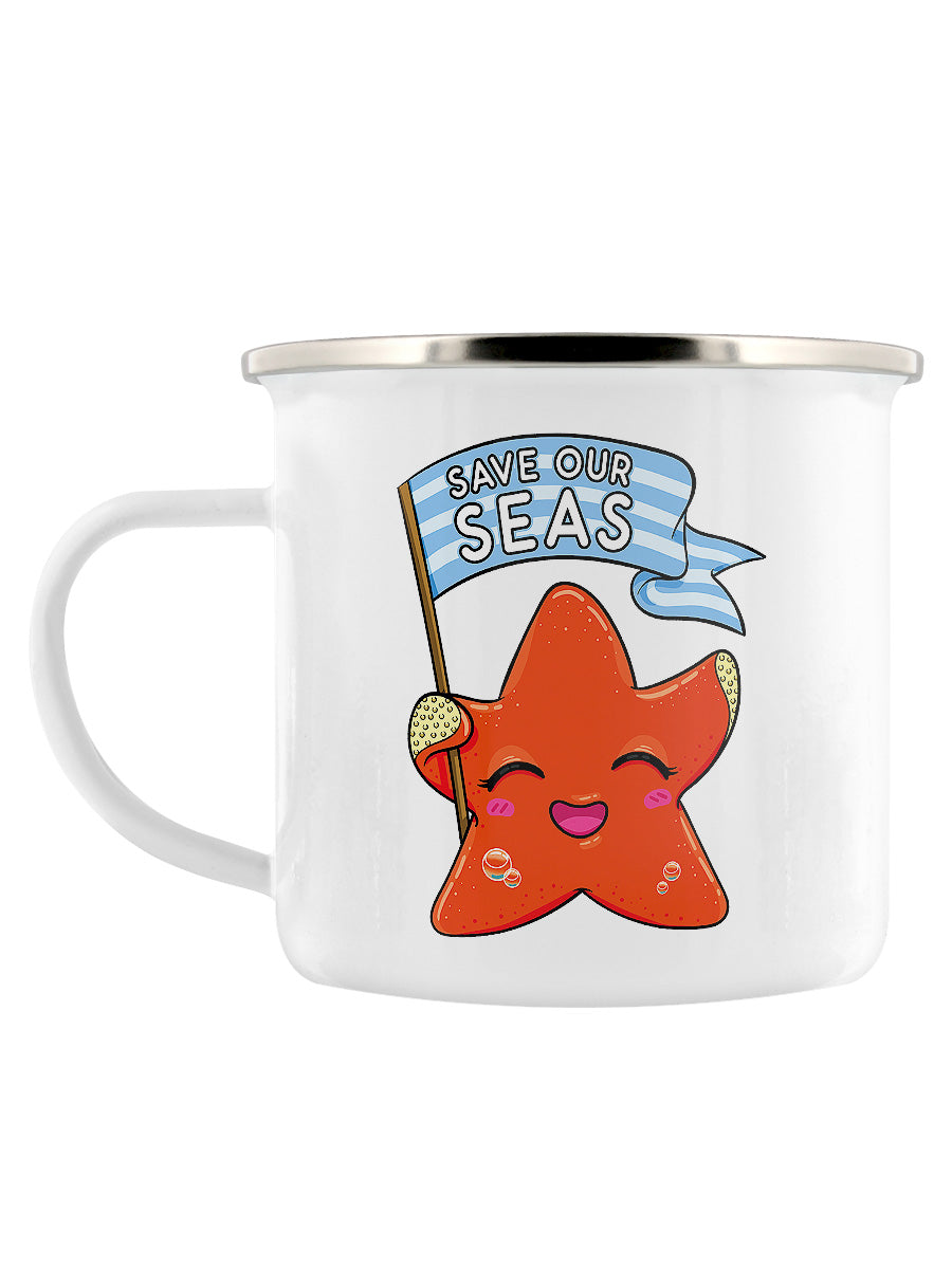 Take your rightful place as a saviour of the seas with this adorable enamel mug! Perfect for anyone looking out for the future of our oceans, this kawaii enamel mug features a starfish clutching a banner calling for you to 'Save Our Seas'.