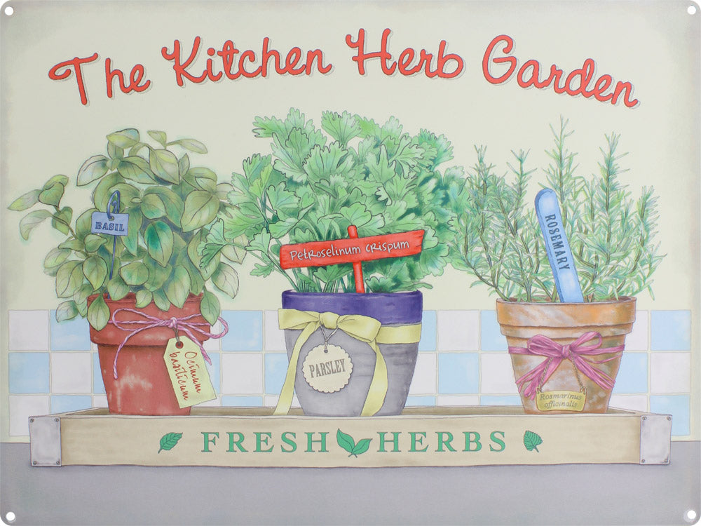 The Kitchen Herb Garden Parsley, Basil and Rosemary Tin Sign 40cm x 30cm (16" x 12")
