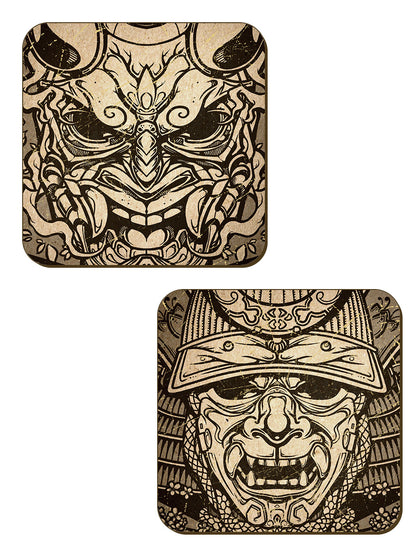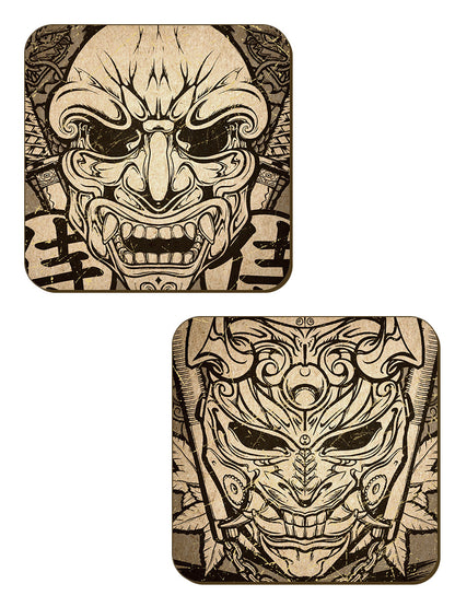 These stunning coasters, featuring the traditional mask of Japanese warriors, are sure to raise your home decor level to an otherwise unattained place. With four distinct styles, intricately designed, they are a must have within your home. Celebrate the warriors of old and keep your surfaces from being marked at the same time!
