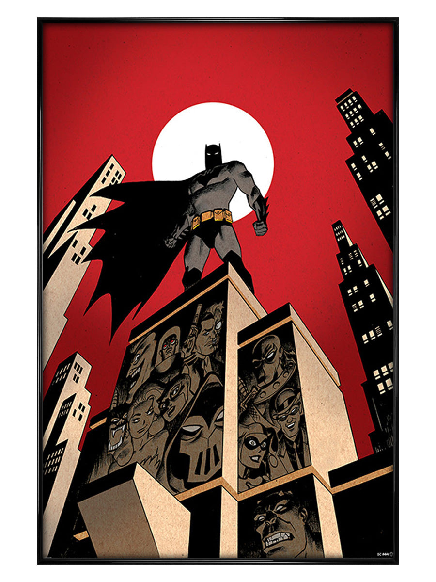 This cool poster features Batman standing atop the buildings of Gotham, it's silent protector. He has taken down a rouges gallery of supervillains over the years, such as the Joker, Harley Quinn and Two-Face but more will come and The Dark Knight will be ready for them. He is justice, after all.