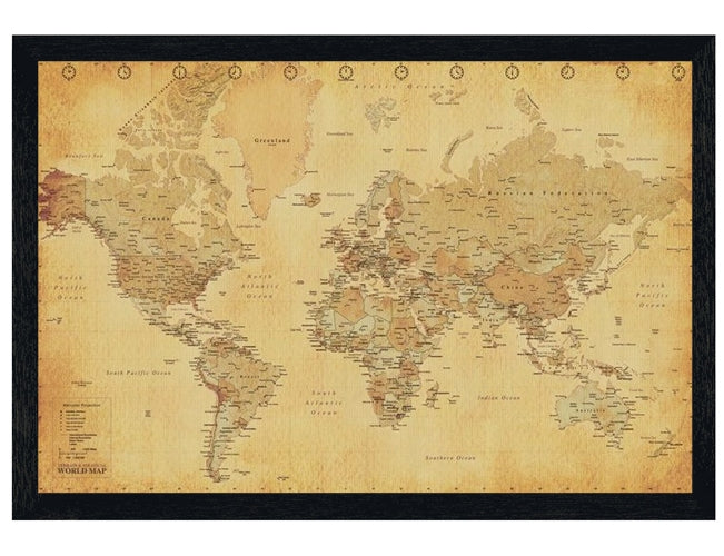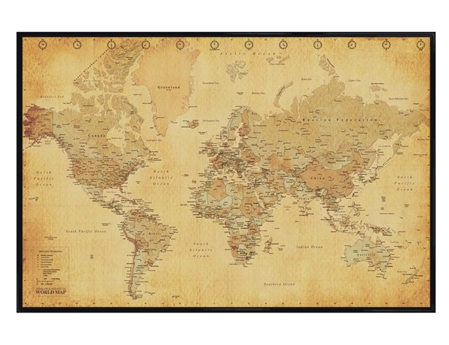 World Map Poster: Add a touch of vintage charm to your home by hanging this world map poster on your wall. Featuring a comprehensive map of the world coloured in various shades of brown, this poster will make a great choice for anyone looking to improve their knowledge of the geography of the world, whilst adding a classic touch to their home interior.