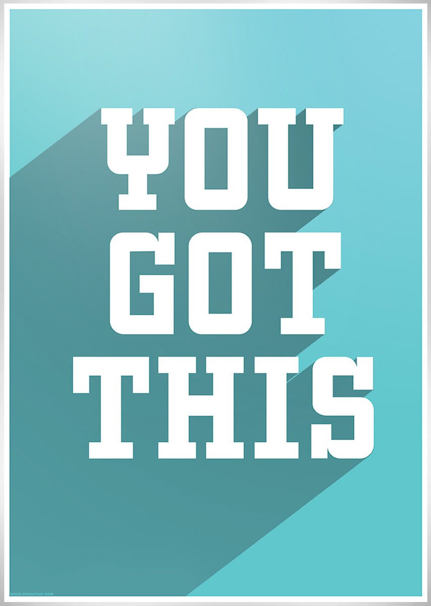 Sometimes you just need to remind yourself that 'You got this'! Whether you hang this motivational poster in your home workout room, bedroom or just above your work desk it's sure to bring you the surge of self-empowerment you need. With a bold white font and muted blue background, this poster is sure to fit into any theme.